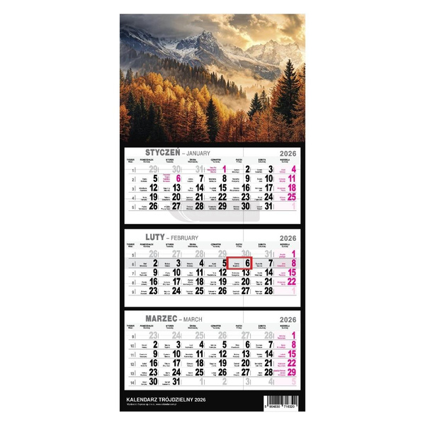 Kalendarz Trójdzielny w mniejszym formacie (210 x 450 x 4 mm) to kompaktowe i praktyczne rozwiązanie dla osób, które chcą mieć szybki dostęp do dat przy ograniczonej przestrzeni. Idealny zarówno do użytku domowego, jak i biurowego szczególnie tam, gdzie miejsce na ścianie jest ograniczone, a potrzeba organizacji czasu niezmienna.