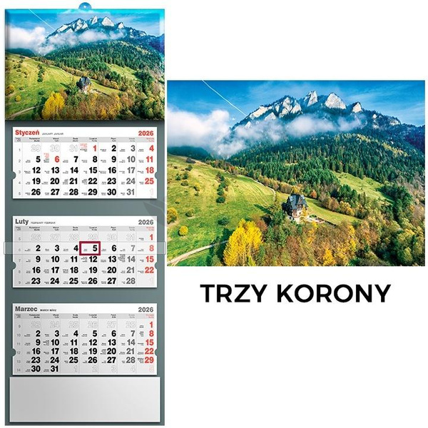 Kalendarz 2026 trójdzielny Trzy Korony