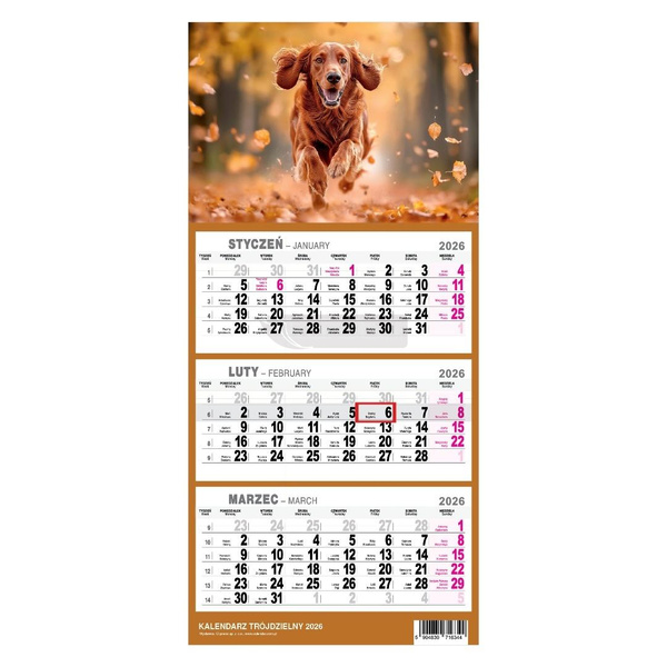 - Zawiera czytelne kalendarium z imieninami i świetami w języku polskim