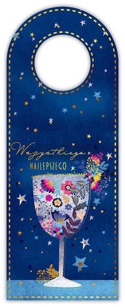 Zawieszka na butelkę, na różne okazje śmieszne i poważne. Zdobiona złotem ekskluzywna dekoracja butelki.