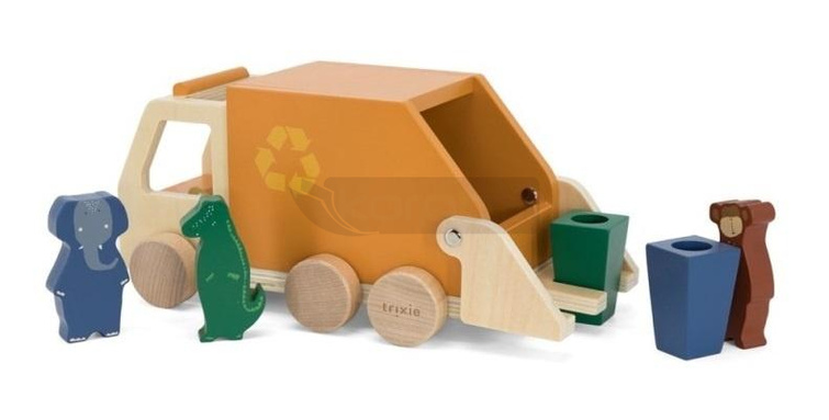 Gotowi do zbierania śmieci i recyklingu! Nasi zwierzęcy przyjaciele chętnie pomagają w segregacji odpadów, dbając o przyszłość naszej planety. Śmieciarka jest wyposażona w 3 zwierzątka oraz 2 pojemniki do zbierania i opróżniania z tyłu pojazdu. To wspaniały sposób, aby dzieci nauczyły się, jak ważny jest recykling! Skład: MDF FSC(R) - drewno bukowe FSC(R) - sklejka FSC(R) Rekomendowany wiek: 18m+