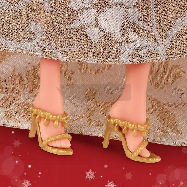 Lalka Barbie Holiday 2025 jest gotowa, by w wielkim stylu cieszyć się urokami tego sezonu. Ubrana jest w pełną blasku suknię ze srebrno-złotym brokatowym wzorem, idealną na świąteczne szaleństwa. Suknia jest pełna olśniewających detali, w tym efektownego dekoltu z akcentami tiulu i dużej kokardy, a dopełnieniem są kaskadowe złote kolczyki i pasujące do nich pantofle. W opakowaniu idealnym do ekspozycji, lalka idealnie sprawdzi się w kolekcji lub na świątecznych listach życzeń.