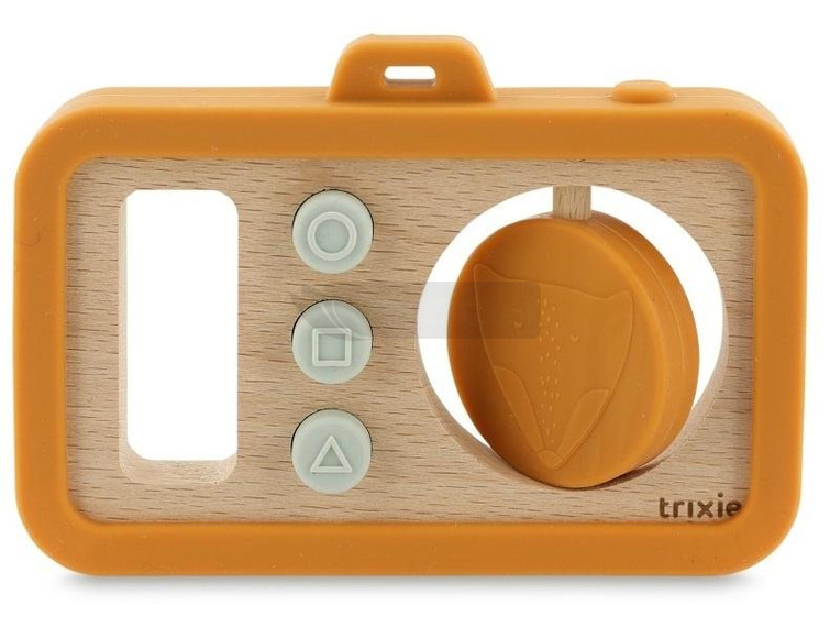 Ogromne uśmiechy i zabawne miny to idealne towarzystwo dla aparatu stworzonego specjalnie dla maluszków! Lekki, z zaokrąglonymi krawędziami i łatwym do chwycenia, ten gryzak oferuje wiele funkcji, takich jak miękkie przyciski z silikonu i obracający się dysk ze zwierzątkami. Dziecko może ćwiczyć umiejętności manualne oraz koordynację ręka-oko, robiąc kilka "zdjęć". Skład: Drewno bukowe FSC(R) - 100%, silikon Rekomendowany wiek: 0m+