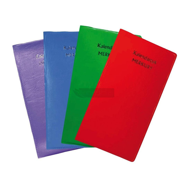 dostępny w 4 kolorach, 80 stron, kalendarium tygodniowe z miejscem na notatki, na końcu kalendarza adresownik, rozmiar 85x155mm, okładka PCV