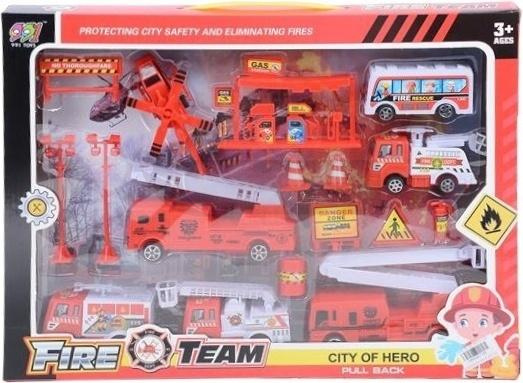 Przygotuj się na bohaterskie akcje z zestawem "Fire Team: City of Hero"! Ten obszerny zestaw zabawek pozwoli Twojemu dziecku wcielić się w rolę strażaka, gaszącego pożary i dbającego o bezpieczeństwo miasta. W komplecie znajdziesz różnorodne pojazdy ratownicze, w tym wozy strażackie z wysuwanymi drabinami, autobus ratunkowy oraz dynamiczny helikopter. Dodatkowo zestaw zawiera stację benzynową do tankowania pojazdów, znaki drogowe ("DANGER ZONE", "DO NOT THROUGHFARE"), pachołki, beczki i słupy oświetleniowe, co pozwala na budowanie realistycznych scenariuszy. Wszystkie pojazdy wyposażone są w system "Pull Back", co zapewnia dodatkową frajdę z zabawy. To idealny prezent dla małych odkrywców od 3. roku życia, rozwijający wyobraźnię i kreatywność poprzez fascynujące, ratownicze misje.