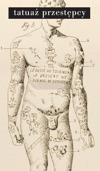 Ci spośród nas, którzy posiadają mnóstwo zboczeń, tym się różnią od człowieka uczciwego i prawego, że ozdabiają swe ciała przeróżnymi szkaradnymi malunkami. Oszuści, rabusie, podpalacze, złodzieje, próżniacy, włóczędzy, zabójcy, pederaści i prostytutki traktują tatuaże jak spis swoich przeszłych występków oraz zapowiedź zbrodni zamierzonych. Nierzadko są wśród tych zdobień rysunki lubieżne, które recydywiści każą sobie wykłuwać w miejscach nieprzyzwoitych, a także sekretne znaki, stosowane przez członków tajnych stowarzyszeń. Zwyczajem tym przestępcy niemało przypominają ludy dzikie i pierwotne, a nie bez znaczenia pozostaje fakt, że większość z nich wywodzi się z niższych stanów. Autor tego naukowego dzieła ów zwyczaj opisał, a także liczbami, przykładami i rysunkami swoje obserwacje poparł, ażeby o ich prawdziwości nikt wątpić nie mógł.