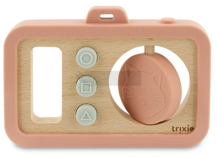 Ogromne uśmiechy i zabawne miny to idealne towarzystwo dla aparatu stworzonego specjalnie dla maluszków! Lekki, z zaokrąglonymi krawędziami i łatwym do chwycenia, ten gryzak oferuje wiele funkcji, takich jak miękkie przyciski z silikonu i obracający się dysk ze zwierzątkami. Dziecko może ćwiczyć umiejętności manualne oraz koordynację ręka-oko, robiąc kilka "zdjęć". Skład: Drewno bukowe FSC(R) - 100%, silikon Rekomendowany wiek: 0m+