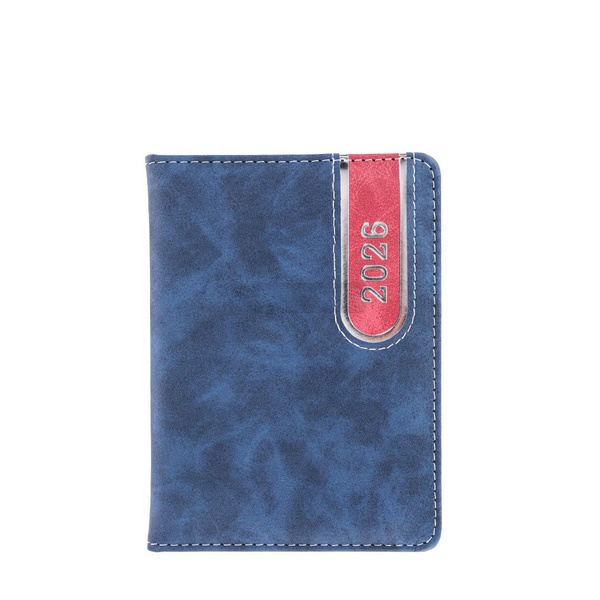 blok: 105x142 mm, 128 stron, papier 64g/m2 kremowy, druk 2 kolory, blok kalendarza szyty nićmi, zaokrąglone rogi, tasiemka