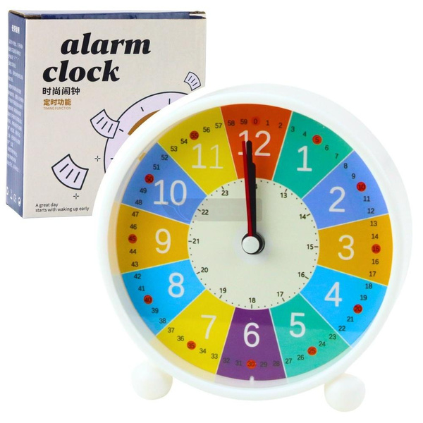 BUDZIK DZIECIĘCY BEZ TYKANIA - ZEGAR DO NAUKI CZASU Kolorowy budzik analogowy dla dzieci to doskonałe połączenie funkcjonalności i edukacji. Dzięki czytelnemu, barwnemu cyferblatowi z podziałem godzin, minut i sekund, dziecko w intuicyjny sposób uczy się odczytywania godziny, rozumienia podziału czasu oraz punktualności. Wyposażony w cichy mechanizm kwarcowy bez tykania, budzik nie zakłóca snu ani nauki dziecka. Płynna wskazówka sekundowa porusza się bezszelestnie, zapewniając komfort zarówno podczas nocnego odpoczynku, jak i w ciągu dnia. Ustawienie godziny oraz alarmu jest bardzo proste i odbywa się za pomocą przejrzystych przycisków umieszczonych z tyłu obudowy. Ten budzik to nie tylko praktyczne narzędzie, ale również świetna pomoc dydaktyczna - idealna na prezent z okazji rozpoczęcia szkoły, Dnia Dziecka czy świąt. Dzięki kompaktowym wymiarom świetnie sprawdzi się na biurku, stoliku nocnym, półce lub w podróży. SPECYFIKACJA: Typ: budzik analogowy dla dzieci Mechanizm: kwarcowy - bez tykania Funkcje: zegar + alarm Tarcza: kolorowa - oznaczenia godzin, minut i sekund Cichy chód wskazówek - bezgłośna praca Obsługa: prosta regulacja godziny i budzika z tyłu Wymiary budzika: 12 11 cm Wymiary opakowania: 12 11 4,5 cm Materiał: tworzywo sztuczne Zasilanie: bateria 1x 1.5V AA (brak w zestawie) ZAWARTOŚĆ ZESTAWU: 1 budzik dziecięcy analogowy 1 opakowanie kartonowe