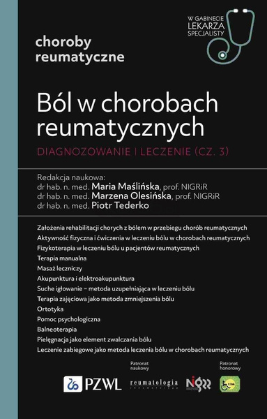 Wydanie z serii "W gabinecie lekarza specjalisty" - Reumatologia - trzecia część cyklu poświęconego leczeniu bólu w chorobach reumatycznych. Przedstawia ona niefarmakologiczne metody zwalczania bólu. Autorzy koncentrują się na szeroko rozumianej rehabilitacji oraz na leczeniu operacyjnym. Opisane metody nierzadko stanowią uzupełnienie leczenia farmakologicznego, mogą być też wiodące w przypadkach deformacji czy uszkodzenia wymagającego działań naprawczych.