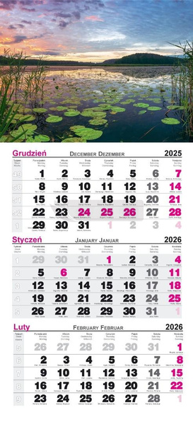 Kalendarz 2026 ścienny trójdzielny Jezioro