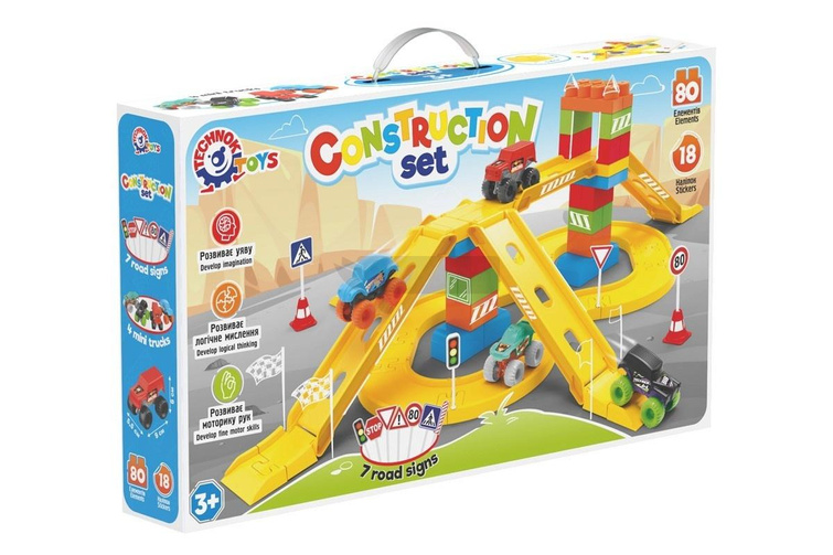Zabawka składa się z 80 różnych elementów, w tym: części toru z rozjazdami i zakrętami, pochyłości, znaków drogowych oraz samochodów. Klocki konstrukcyjne są wygodne i łatwe do łączenia. Dzieci samodzielnie wybierają kształt drogi, ponieważ zestaw zawiera różnorodne elementy, jak klasyczny zestaw konstrukcyjny. W komplecie znajduje się także 7 znaków drogowych, które wspomagają rozwój pamięci, koncentracji i spostrzegawczości u młodych miłośników motoryzacji.