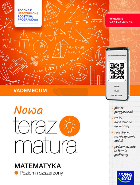 To uaktualnione vademecum z serii NOWA Teraz matura będzie przydatne dla wszystkich uczniów przygotowujących się do matury z matematyki na poziomie rozszerzonym. Pomoże skutecznie uporządkować wiedzę, przećwiczyć różne typy zadań i przygotować się do egzaminu z matematyki 2026 zgodnie z najnowszymi wymaganiami CKE i uszczuploną podstawą programową.