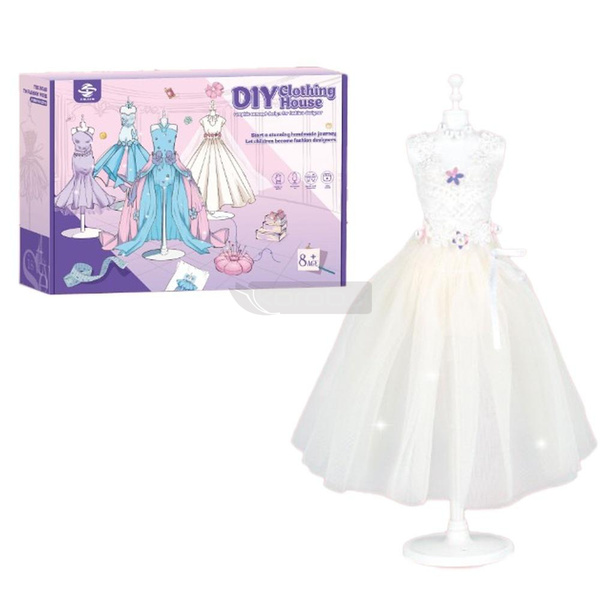 Projektowanie mody - zestaw kreatywny 3 manekiny, kawałki tiulu w białym kolorze, białe kawałki tiulu z cekinami, tasiemki, kokardki, koronki, nożyczki, igły nici, taśma dwustronna, klej. Wymiary opakowania: 35 x 9 x 25.5 cm Wiek 8+