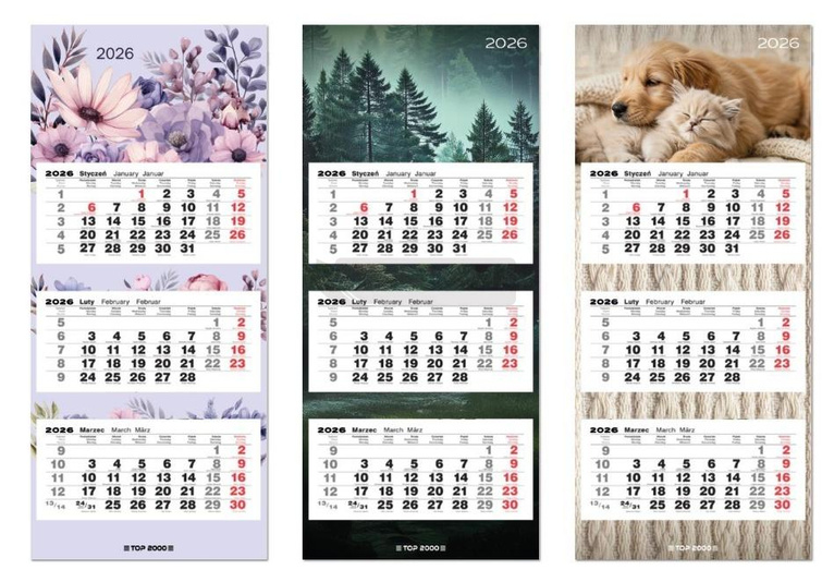 Kalendarz 2026 ścienny trójdzielny 31x70,5cm mix