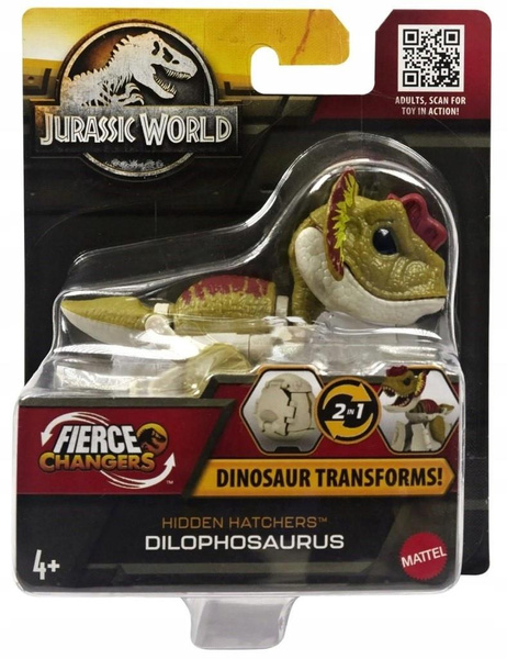 Przygotuj się na wartką akcję i przygody wprost ze świata Jurassic World! Te figurki dinozaurów w kształcie jajek z serii Jurassic World dają fanom dinozaurów podwójną frajdę! Zmieniają się z 5-centymetrowego jaja w przerażającego dinozaura w 8 prostych krokach! Każda figurka dinozaura ma 8,8 cm długości i 7,2 cm wysokości. Należy do nowej serii Fierce Changers™. Świetna zabawa metamorfozą dla dzieci w wieku od 4 lat.