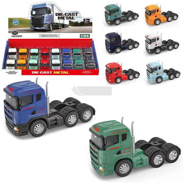 Ten produkt to idealna propozycja dla małych i dużych fanów motoryzacji! Prezentujemy szczegółowo wykonane ciężarówki typu "die-cast", czyli odlewane z metalu, co gwarantuje ich trwałość i solidność. Główne cechy produktu: Materiał: Wysokiej jakości odlew metalowy ("die-cast") z plastikowymi elementami, zapewniający wytrzymałość i realistyczny wygląd. Skala: 1:64, idealna do kolekcjonowania i zabawy - 8,5 cm długości Wzornictwo: Realistyczne detale, wzorowane na nowoczesnych ciągnikach siodłowych. Różnorodność: Dostępne w różnych kolorach (m.in. niebieski, zielony, czerwony, pomarańczowy, granatowy, miętowy, biały), co pozwala na stworzenie własnej floty. Zestaw: Możliwość zakupu pojedynczych modeli lub całego zestawu, idealnego na prezent. Wiek: Zabawka przeznaczona dla dzieci w wieku 3+. Ciężarówki charakteryzują się ruchomymi kołami, co umożliwia swobodną zabawę i symulację transportu. To świetny sposób na rozwijanie wyobraźni i zdolności manualnych u dzieci. Niezależnie od tego, czy szukasz zabawki dla swojego dziecka, czy elementu do swojej kolekcji, te metalowe ciężarówki z pewnością spełnią Twoje oczekiwania. Idealne dla: Kolekcjonerów modeli pojazdów. Dzieci uwielbiających motoryzację i zabawę w odgrywanie ról. Jako prezent na urodziny, Dzień Dziecka lub inną okazję. Zapewnij swojemu dziecku wiele godzin kreatywnej zabawy z tymi fantastycznymi, metalowymi ciężarówkami!