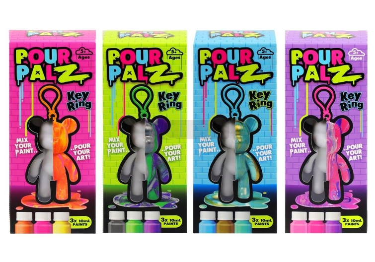 Stwórz jedyny w swoim rodzaju przedmiot kolekcjonerski! Mieszaj i wylewaj kolorowe farby na figurkę, żeby uzyskać unikalny brelok.