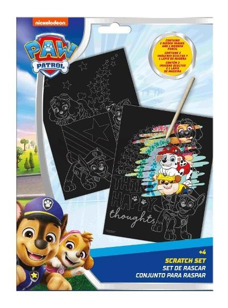 Zestaw kreatywny z ulubionymi bohaterami serialu Psi Patrol. Zawartość: 2 obrazki do wydrapywania, patyczek