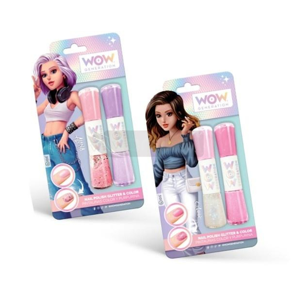 Ekskluzywny podwójny lakier do paznokci WOW Generation. Wybierz z pełnej gamy kolorów, ale jest też niespodzianka! Twoja dziewczynka może pomalować paznokcie na swoje ulubione kolory, a na drugiej stronie lakieru będzie miała brokat do nałożenia na kolor dla specjalnego i spektakularnego efektu.Będzie miała idealne i błyszczące paznokcie jak prawdziwa dziewczyna WOW.