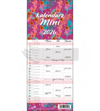 Kalendarz ma wymiary 14,00 x 34,00 cm. Podobny kalendarz dla rodzin możesz kupić również w formacie dużym oraz małym.