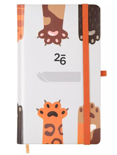W kalendarzach na 2026 rok znajduje się również wstążka pomocna w szybkiej orientacji w kalendarzu oraz pętelka na długopis.