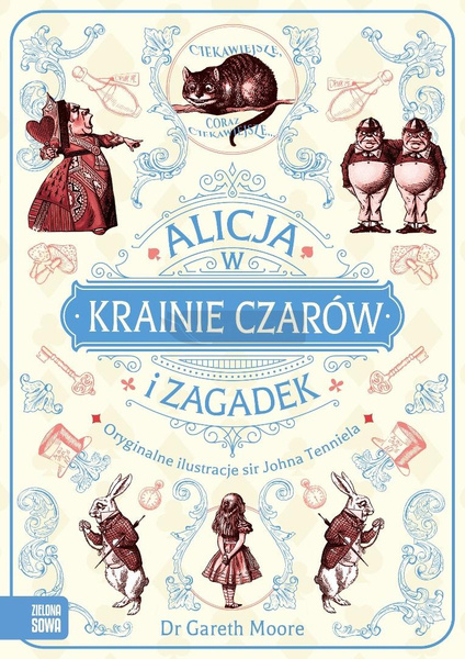 Pełna osobliwości i uroku kolekcja zagadek inspirowana dziełami Lewisa Carrolla. Zawiera przeplatające się przez całą książkę przezabawnie absurdalne fragmenty " Przygód Alicji w Krainie Czarów" oraz "O tym, co Alicja odkryła po Drugiej Stronie Lustra". Książka zawiera jedyne w swoim rodzaju oryginalne ilustracje Johna Tenniela, przedstawiające Twoich ukochanych ekscentryków zamieszkujących ten magiczny świat, . Kapelusznika, Kota z Cheshire i Białego Królika. Zachowaj czujność podczas rozwiązywania zagadek równie intrygujących jak bohaterowie, którzy je zadają, gier słownych i innych łamigłówek. Czas rozpocząć przygodę!