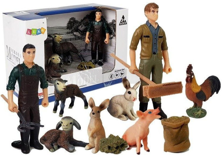 Zestaw Figurek Farma 5 elementów Wspaniale wykonane z najwyższą dbałością o szczegóły figurki elementów farmy powiększą kolekcję każdego małego kolekcjonera. Każda figurka została starannie odlana z tworzywa i bardzo starannie pomalowana przez co wiernie oddaje rzeczywisty wygląd zwierzęcia, postaci czy przedmiotu. Figurki pozwolą każdemu dziecku na stworzenie własnego rolnictwa. Kolekcjonowanie figurek wiejskich może stać się piękną pasją. Figurki farmera posiadają możliwość wyjęcia przedmiotu z ręki. Do wyboru: - rolnik z widłami, dwie owieczki, króliczek i sianko - rolnik z miotłą, świnka, kogut, króliczek i worek paszy Po dokonanym zakupie prosimy o poinformowanie o wyborze zestawu w notatce do zamówienia. Wysokość wybranych figurek: - rolnik z widłami bądź z miotłą: 9.5 cm - owieczki: 5cm, 3.5 cm - świnka: 4 cm - kogut: 6 cm Wymiary pudełka: 16 cm x 10 cm x 11,5 cm Zabawki przeznaczone są dla dzieci powyżej 3. roku życia. Figurki posiadają certyfikat CE i są zgodne z normą EN 71. Zapakowane jest w kartonik, dzięki czemu nadaje się idealnie na prezent.