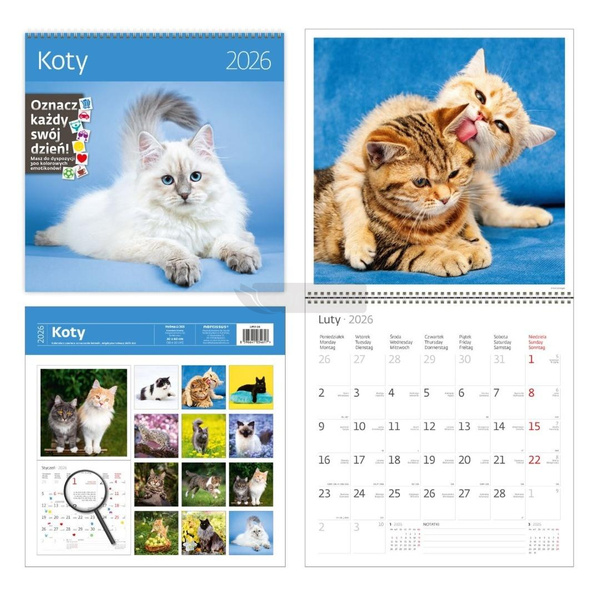 Kalendarz 2026 Koty 30x30 z naklejkami