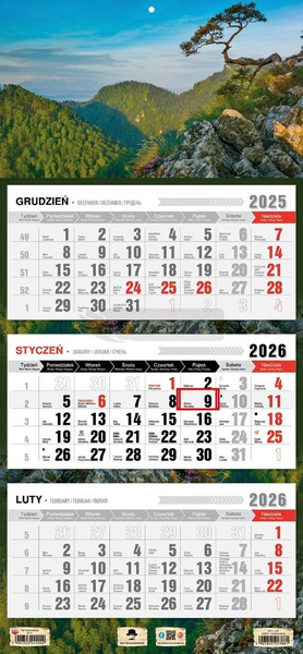 Kalendarz 2026 trójdzielny płaska główka Sokolnica