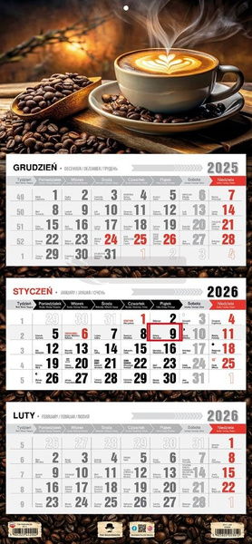 Kalendarz 2026 trójdzielny płaska główka kawa