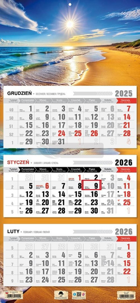 Kalendarz 2026 trójdzielny płaska główka morze