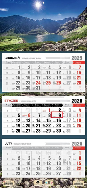 Kalendarz 2026 TRÓJDZIELNY PŁASKA GŁÓWKA. Format 315/680mm. Trzy komplety klasycznych kalendariów z przesuwnym okienkiem. Główka wypukła z otworem wierconym. Dodatkowo nazwy miesiąca i dni tygodnia w języku Ukraińskim, Angielskim i Niemieckim. Kalendarium dodatkowo zawiera fazy księżyca i znaki zodiaku. Dużo miejsca do notowania, czytelne duże litery i cyfry. Nowoczesne i klasyczne wzornictwo, dopracowane wzory, czytelne kalendarium. Praktyczny i elegancki kalendarz który sprawdzi się zarówno w domu, biurze jak i innych pomieszczeniach.