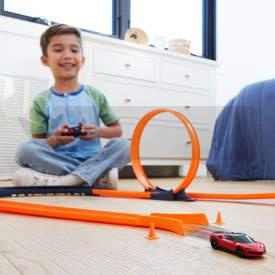 Wrzuć wyższy bieg zdalnie sterowanej zabawy z pojazdem Hot Wheels RC Ferrari SF90 Stradale Assetto Fiorano w skali 1:64. Ten zdalnie sterowany pojazd o autentycznych detalach i kultowym stylu może ścigać się na torze Hot Wheels i poza nim, a do tego ma przycisk przyspieszenia, który napędza jazdę po pętli i kaskaderskie popisy. Tory Hot Wheels są sprzedawane oddzielnie . W pełni funkcjonalny pilot zdalnego sterowania działa na częstotliwości 2,4 GHz, która zapobiega zakłóceniom podczas rywalizacji z innymi pojazdami RC. Kolory i elementy dekoracyjne mogą się różnić.