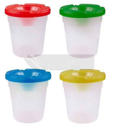 Pojemnik wykonany jest z polipropylenu i składa się z trzech części: przezroczystego pojemnika, kolorowego wieczka i przezroczystej zatyczki. Na wieczku znajdują się specjalne wgłębienia przeznaczone do odkładania pędzli. Jeżeli woda w pojemniku nie przekroczy 3,5 cm, kubek szczelnie zatrzyma ją wewnątrz nawet wtedy, gdy się przewróci.