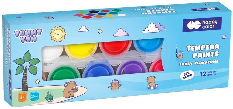 Farby plakatowe 12 kolorów Kapibara HAPPY COLOR