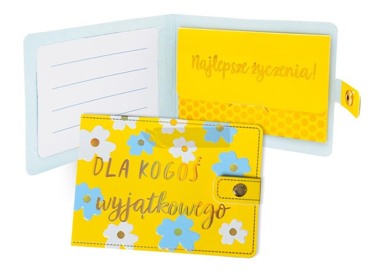 Portfeliki POR-014 "Dla kogoś wyjątkowego" Portfeliki z życzeniami to alternatywa dla tradycyjnych kartek, są wyjątkowym sposobem na podarowanie bliskiej osobie banknotu. Portfeliki są kolorowe i uszlachetnione metalizowaną folią hot-stamp, oraz są wyposażone w zamknięcie na zatrzask, co umożliwia ich wielokrotne otwieranie i zamykanie - jak w prawdziwym portfelu. Portfeliki zawierają niebanalne teksty oraz życzenia w środku. Specyfikacja: wymiary: 11 x 8 cm (po złożeniu) wnętrze: życzenia w środku waga: 13 g okazja: ogólne życzenia