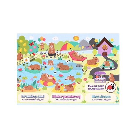 Blok rysunkowy biały A4 Strigo 50 kartek, 90 g/m2 Kapibary