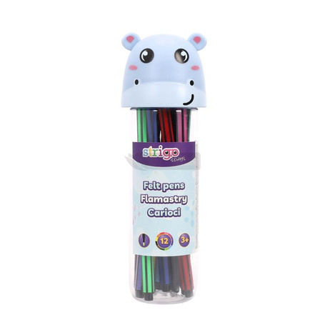 Flamastry Strigo Hipopotam w12 głębokich kolorach. Flamastry posiadają łatwy do usunięcia tusz co sprawia, że produkt jest idealny dla dzieci.