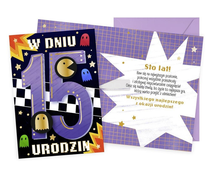 Kartka Dream Cards "W dniu 15 urodzin" DK-1267 Kartka B6 z ozdobnej serii Dream Cards - nieduża, ale robi wrażenie dzięki atrakcyjnej kolorystyce i ciekawym zdobieniom. To idealny wybór łączący przyjazną cenę z jakością. Cechy szczególne: wielkość: B6, 16.6 x 11.7 cm po złożeniu, koperta: w zestawie, kolorowa, zdobienia: kolorowe, różnorodne, bogate (w zależności od wzoru: przyklejane dekoracje, elementy biżuteryjne, odstawniki, metaliczne folie, tłoczenia itp.), okazja: urodziny