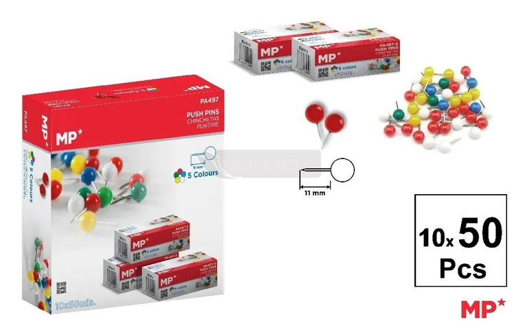 Kolorowe pinezki 11mm okrągła główka 10x50szt