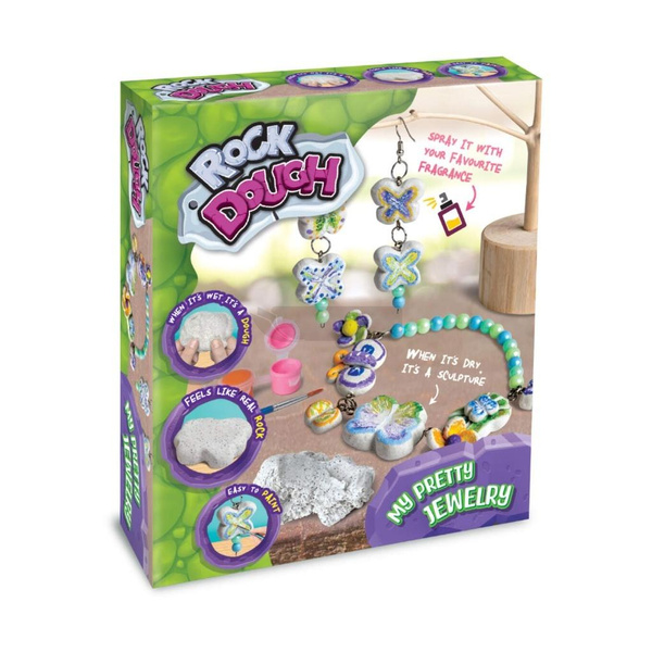 Kreatywny zestaw Strigo do samodzielnego stworzenia swojej kamiennej podstawki na biżuterię. Idealny produkt do rozwijania zdolności manualnych i pobudzenia kreatywności. Rozwija również stymulacje sensoryczne, dzięki kolorom i różnym teksturom. Wystarczy wymieszać masę z wodą, wlać do foremki i zaczekać do całkowitego wyschnięcia. Pomaluj w swój indywidualny sposób. W zestawie: masa kamienna, elementy biżuterii, przezroczysty sznurek elastyczny, plastikowe koraliki, pędzel, farbki. W środku znajduję się instrukcja użytkowania.