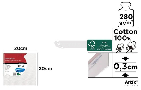 Mini płótno z drewnianą sztalugą. Płótno o gramaturze280 g/m2 wykonane w 100% z bawełny. Rozciągnięte na drewnianej ramie i zszyty dla lepszego mocowania. Wskazane do malowania olejnego i akrylowego.
