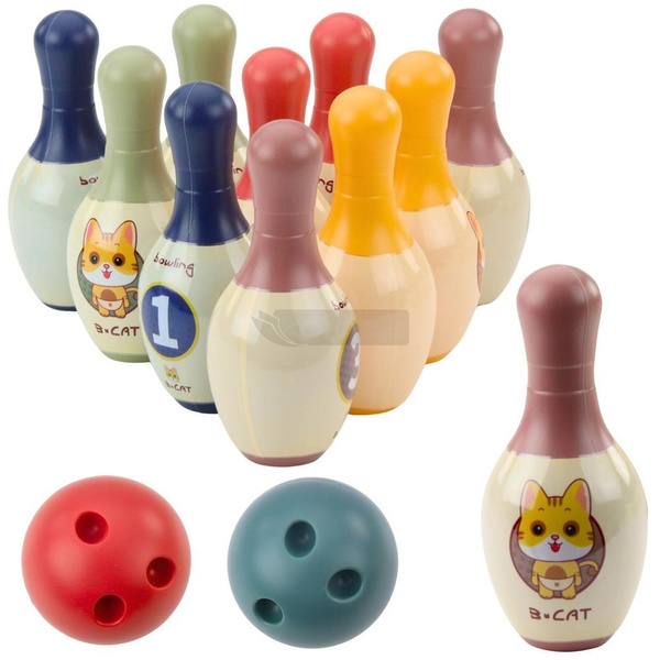 Kręgle z kotkami 10szt + 2 kule