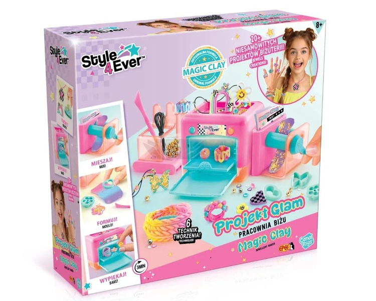 Zanurz się w świat stylu i kreacji z Pracownią Biżu! Dzięki specjalnej masie plastycznej stworzysz modne pierścionki, bransoletki i zawieszki dokładnie takie, jakie sobie wymarzysz. Wybierz kolory, połącz je, uformuj w wybrane kształty, a potem wypiecz w kreatorze i noś!
