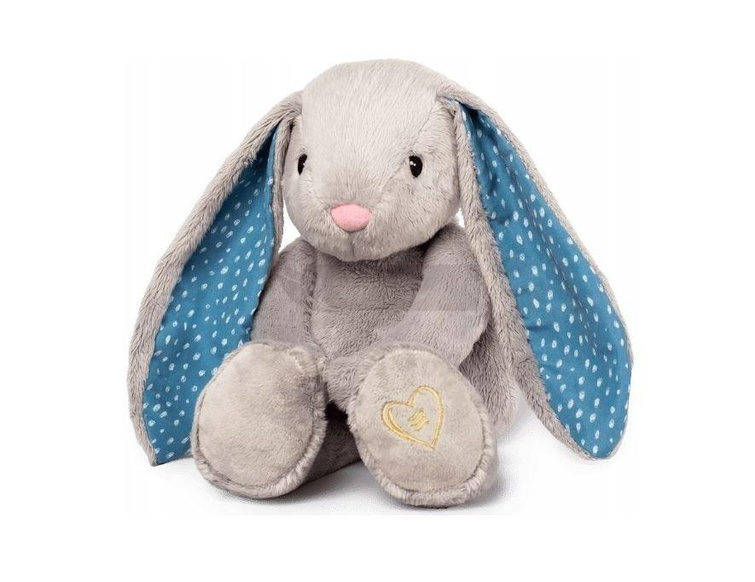 Ten Szumiący króliś-chłopczyk jest uszyty z miękkiego pluszu (najwyższej jakości), który został dokładnie przebadany w laboratoriach sprawdzających bezpieczeństwo zabawek. Wzorzyste tkaniny, zdobiące długie uszy króliczka, zostały zaprojektowane specjalnie dla marki Whisbear. Nóżkę udekorowałyśmy ozdobnym, złotym haftem w kształcie serca z logo marki Whisbear. Dzięki bezpiecznie wszytym magnesom w łapkach króliczka, zabawkę można zaczepić na ramie łóżeczka czy wózka.