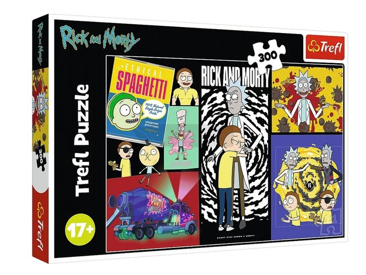Dziwne miejsce w galaktyce to puzzle składające się z 300 elementów przedstawiające postać bajki Ricky i Morty. Po ułożeniu układanki powstanie obrazek o wymiarach 600x400 mm.