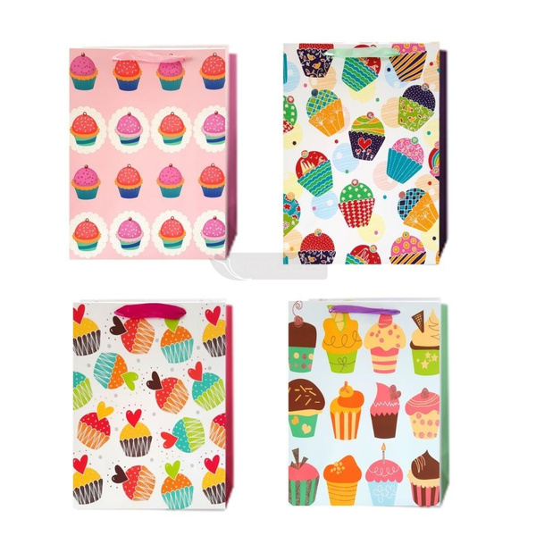 Urocza papierowa torebka prezentowa z kolorowymi rysunkami słodkich babeczek wykonana z grubszego papieru o gramaturze 210 g, co zapewnia jej większą trwałość i odporność na obciążenie. Wyposażona w elegancką tasiemkę, który zapewnia wygodny uchwyt i estetyczne wykończenie. To praktyczne opakowanie, które podkreśla wartość wręczanego prezentu. Torebka posiada brokatowe elementy.