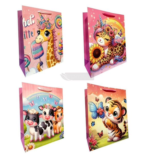 Torebka prezentowa dziecięca L Zwierzaki mix