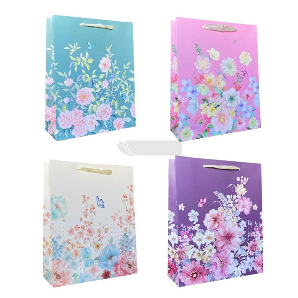 Torebka prezentowa uniwersalna L Kwiaty brokat mix